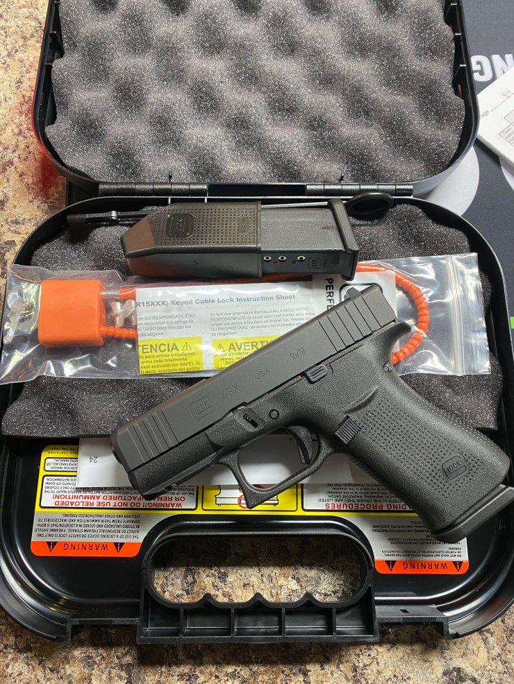 NEW GLOCK 43X 9MM, TWO 10RD MAGS, 3.4”, SPEED LOADER, CASE  $459