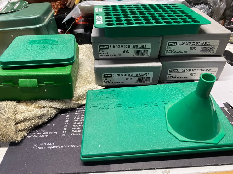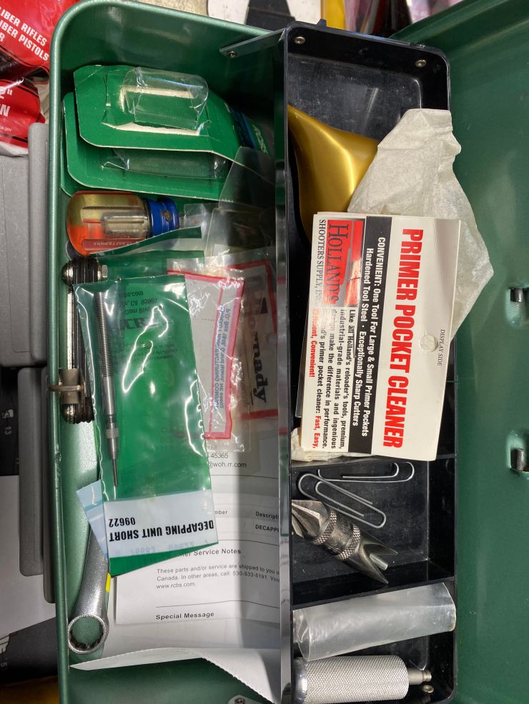 USED RCBS ROCK CHUCKER MASTER RELOADING KIT WITH DIES, BULLETS, PRIMERS AND BRASS AND MODEL 400 CABELA’S VIBRATORY CASE TUMBLER EVERYTHING $500Â